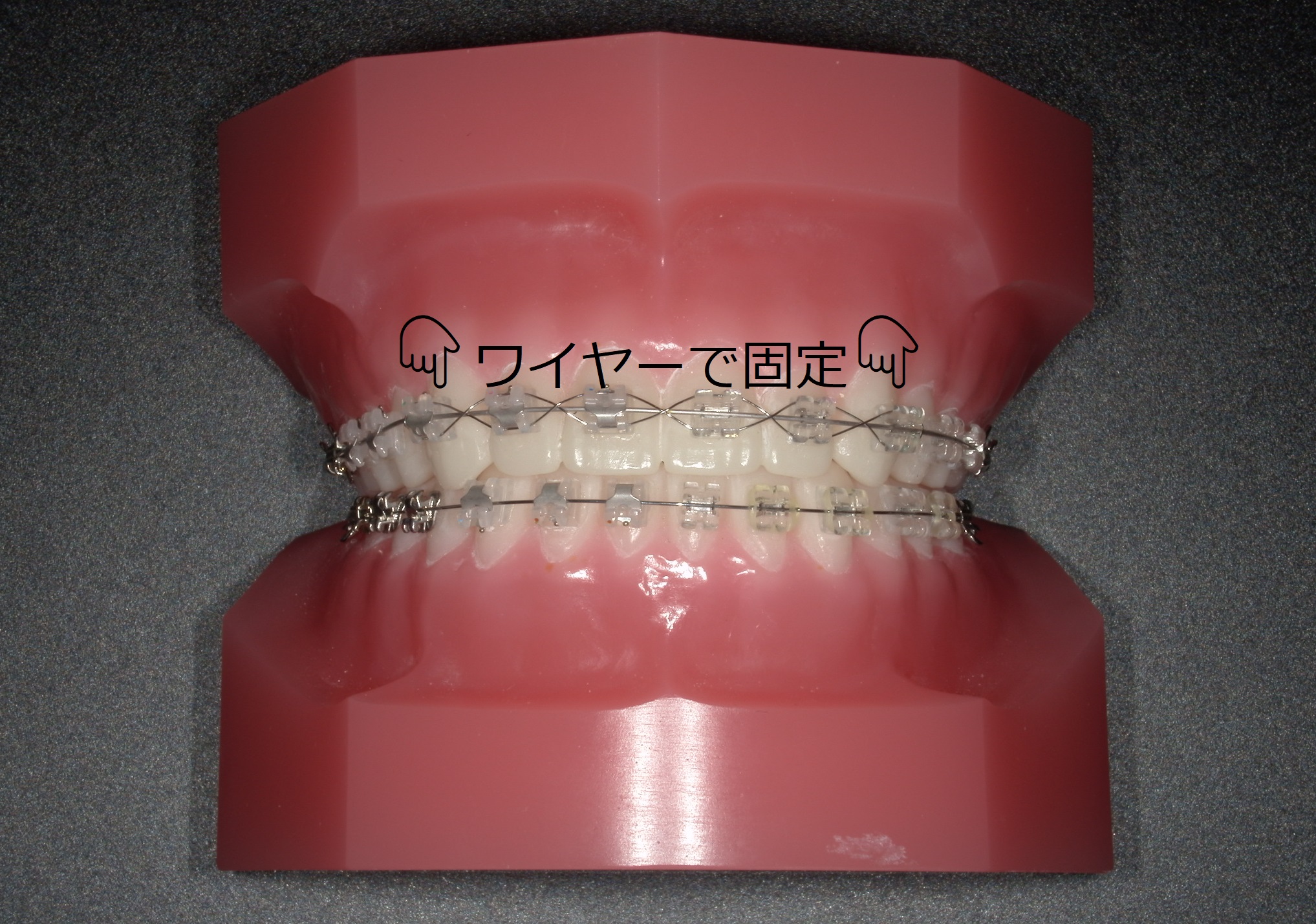 すき間ができてほしくない部分には「パワーチェーン」いうゴム製の連結パーツを使用したり、ワイヤーを用いて固定をしたりします。